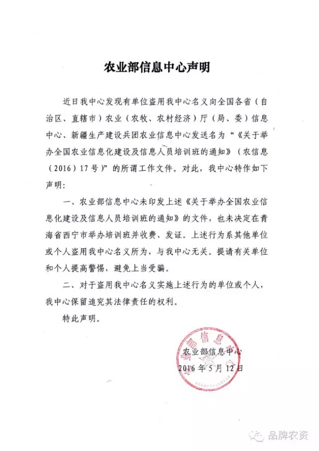 骗子冒充农业部直属单位!一大波人上当!